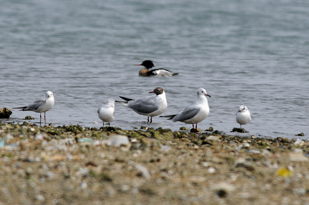 ユリカモメ夏羽 with ウミアイサ photo by misaki