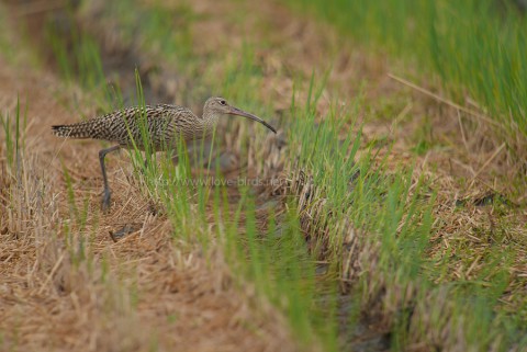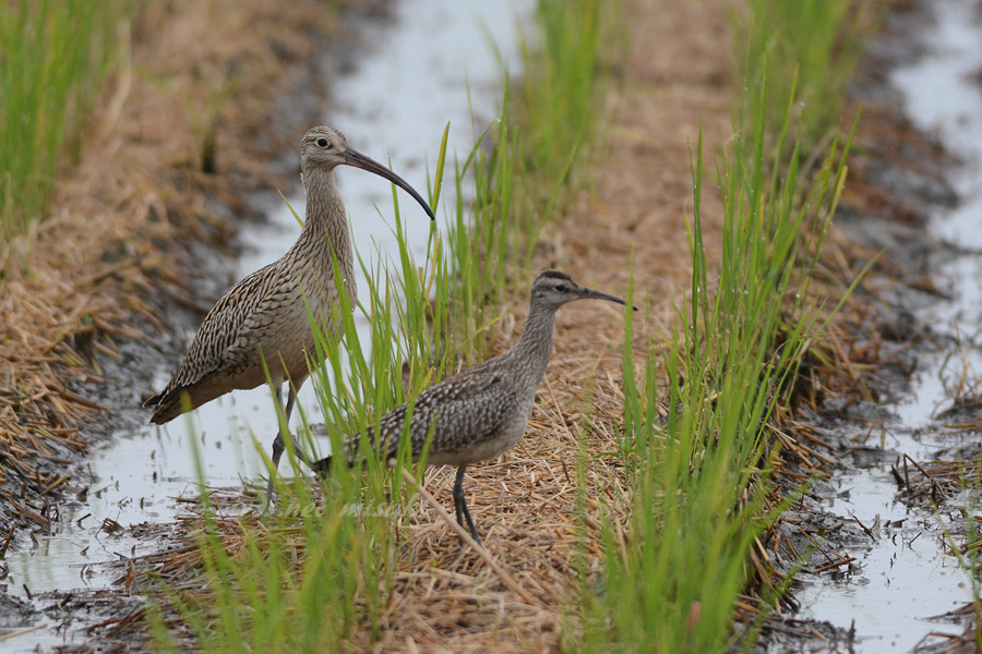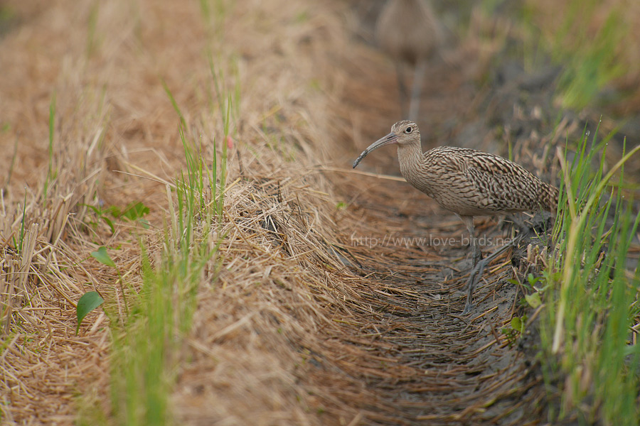 田んぼに珍しくホウロクシギの幼鳥が2羽入っていました。