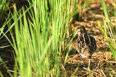 先週の朝一の田んぼで、至近距離にいるチュウジシギを見つけました。